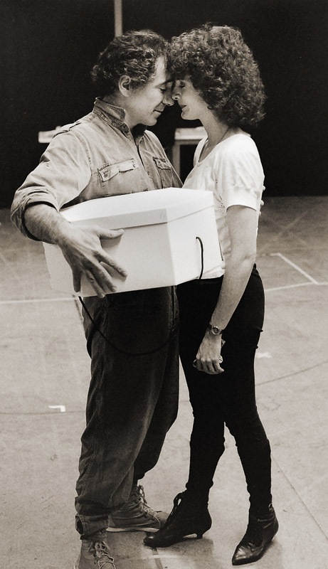 317 / 421 Guys & Dolls by Frank Loesser, Joe Swerling & Abe Burrows Emil Wolk (Nathan Detroit) and Susannah Fellows (Miss Adelaide) in rehearsal, directors Peter Lichtenfels & Tim Supple, Leicester Haymarket Theatre, 1988