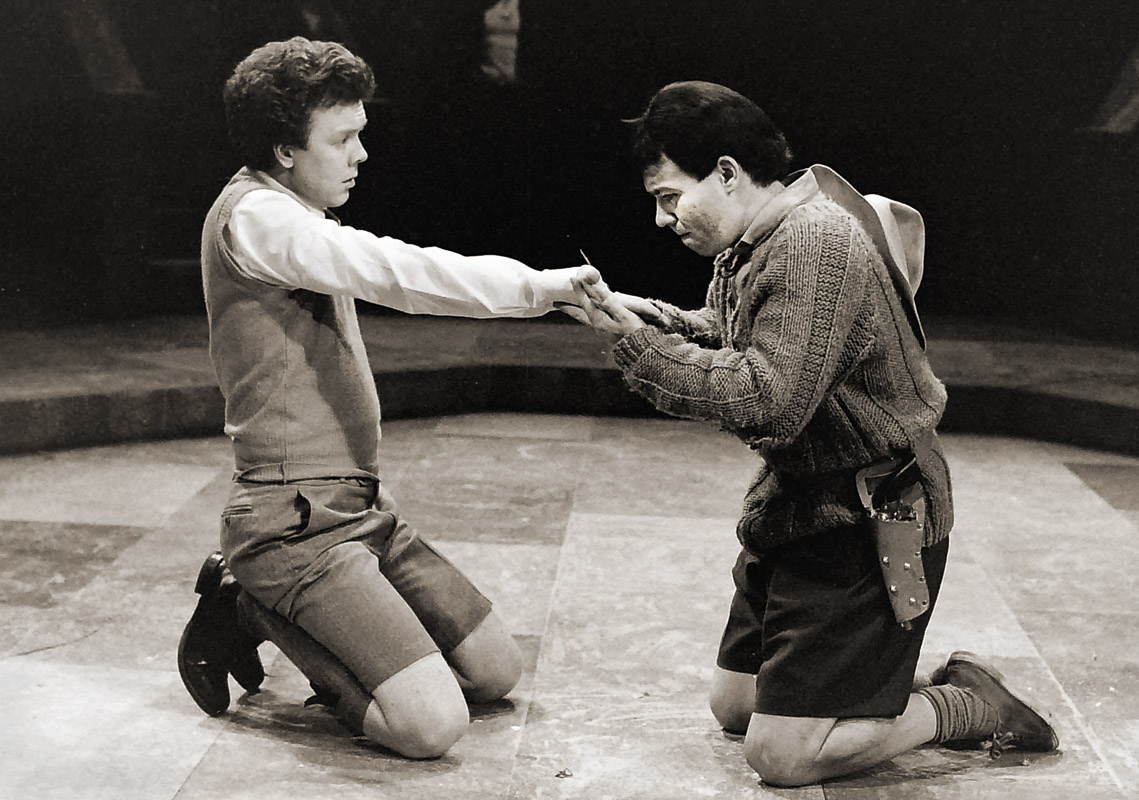 156 / 421 Blood Brothers by Willy Russell David Straun (as Edward) and David Edge (as Mickey), director Warren Hooper, Leicester Haymarket Theatre, 1986