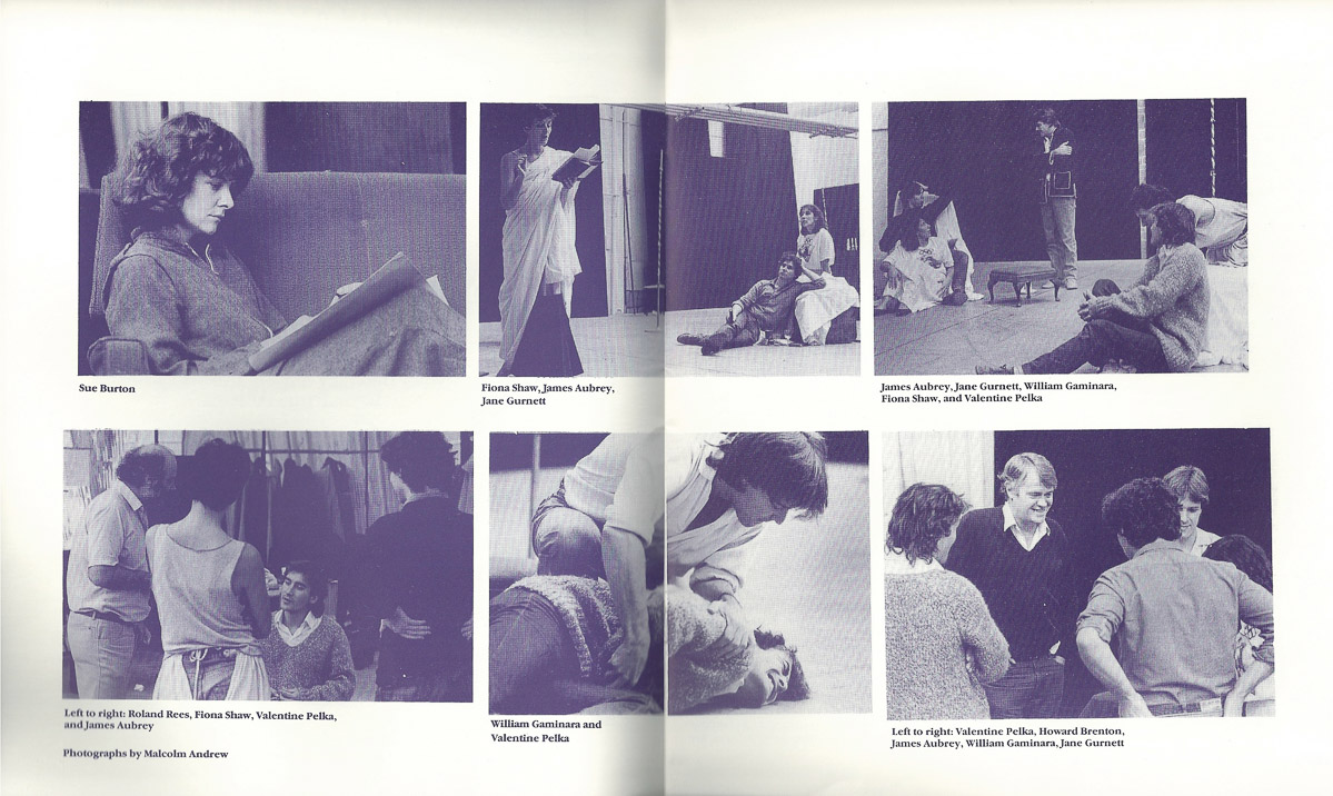 23 / 421 Bloody Poetry by Howard Brenton Centre-fold in theatre programme of rehearsal photographs, Leicester Haymarket Theatre, 1984