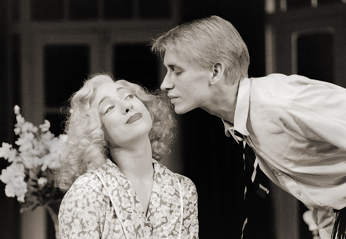 295 / 421 French Without Tears by Terence Rattigan Alex Kingston (as Diana Lake) and Martin McKellan (as Kit Neilan), director Simon Usher, Leicester Haymarket Theatre, 1988