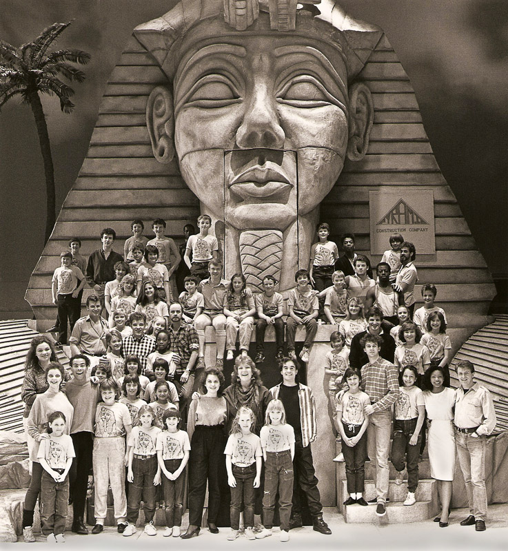 97 / 421 Joseph & the Amazing Technicolor Dreamcoat by Tim Rice & Andrew Lloyd-Webber Group photograph of some of the cast in the show, director Nancy Meckler, Leicester Haymarket Theatre, 1985