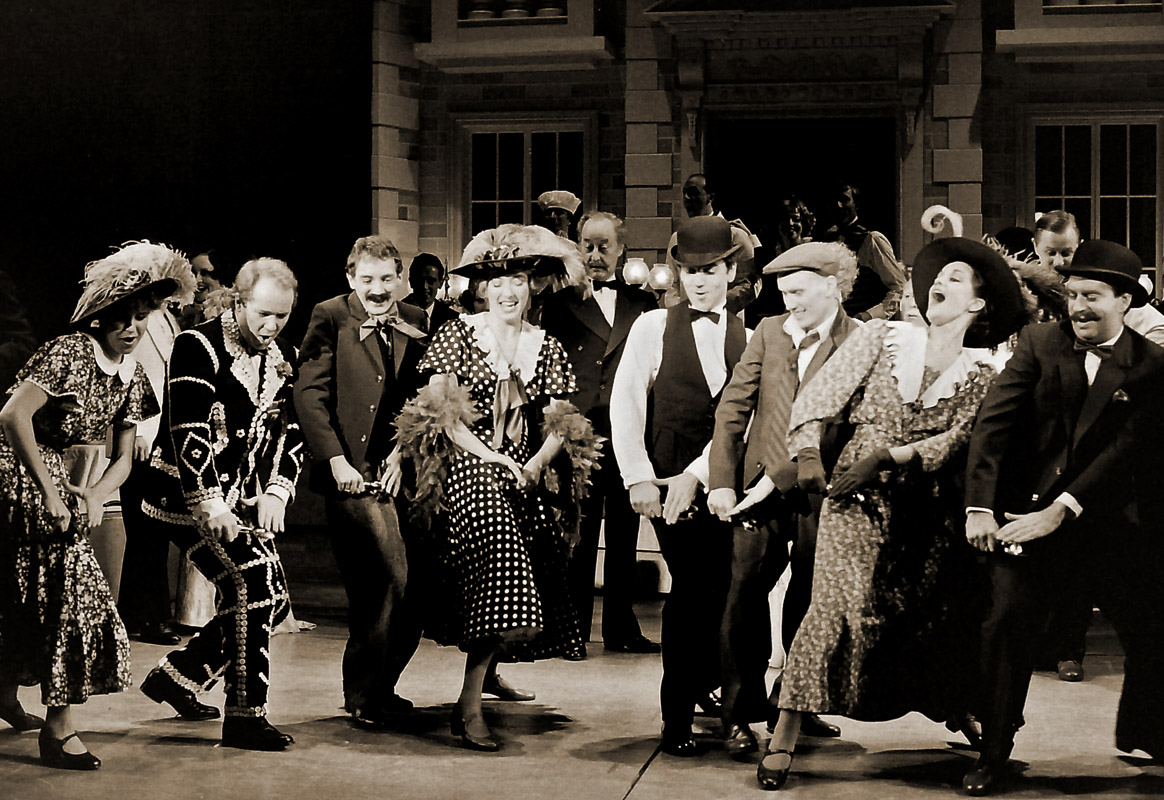 52 / 421 Me and My Girl by Rose and Furber Cast playing the spoons in the song "The Lambeth Walk", director Mike Ockrent, Leicester Haymarket Theatre, 1984