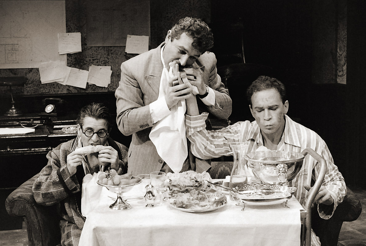 252 / 421 Room Service by John Murray and Allen Boretz Christopher Ryan (as Harry Binion), Gavin Richards (as Gordon Miller) and Clive Arrindell (as Leo Davis), director Keith Hack, Leicester Haymarket Theatre, 1987