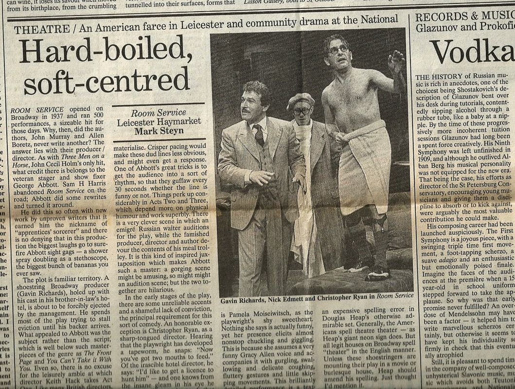 256 / 421 Room Service by John Murray and Allen Boretz The Independent review of Room Service, director Keith Hack, Leicester Haymarket Theatre, 1987