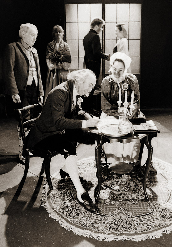 Anthony Douse (as President) David Gant (as Mathias) Frank Stirling (as Christian), Julia R Taylor (as Catherine) and Susannah Doyle (as Annette), directors David O'Shea and Simon Usher, Leicester Haymarket Theatre, 1988