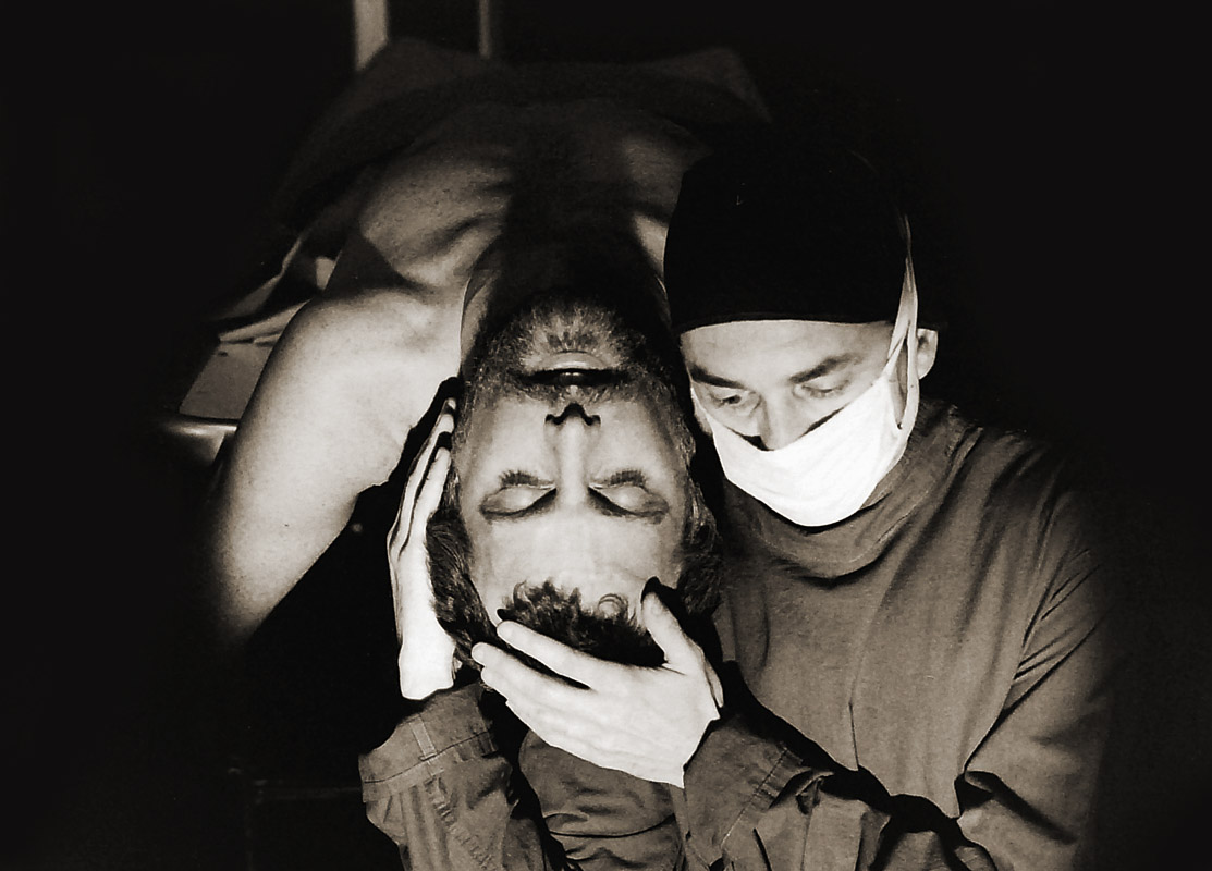239 / 421 The Traveller by Jean-Claude van Italie David Threlfall (as The Traveller) and Stephen Caro (as Doctor Steiff), director Keith Boak, Leicester Haymarket Theatre & Almeida Theatre London, 1987