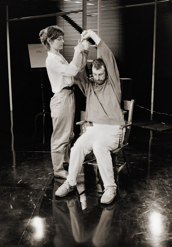 242 / 421 The Traveller by Jean-Claude van Italie Diana Kent (as Tina Sullivan) and David Threlfall (as The Traveller), director Keith Boak, Leicester Haymarket Theatre & Almeida Theatre London, 1987